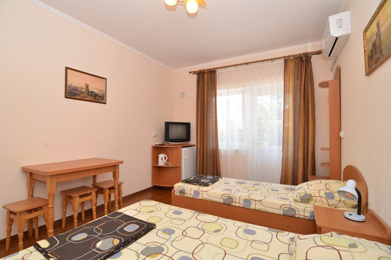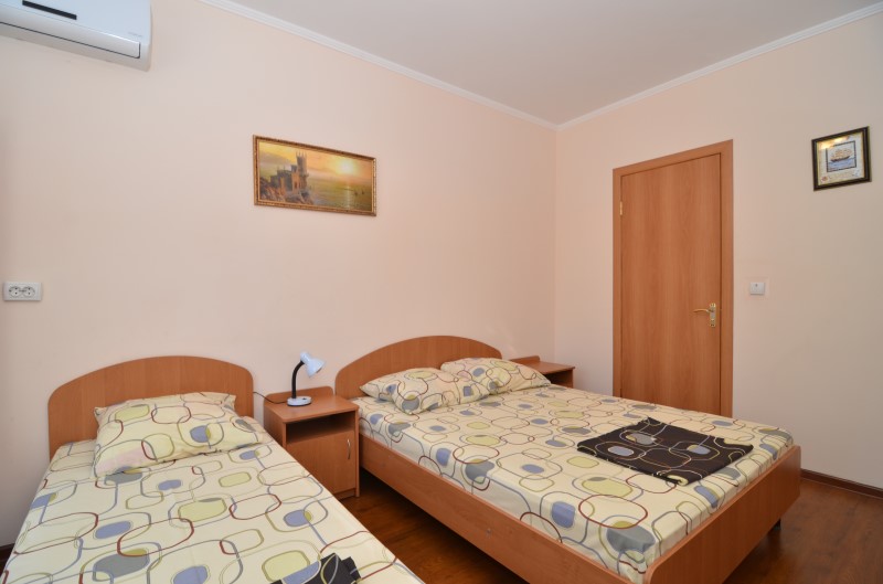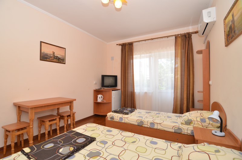 Гостевой дом «Диана» находится всего в 5 минутах неспешной ходьбы от просторных песчаных пляжей Заозерного. Корпус дома расположен на частной ограждённой территории. Двор имеет приятный и аккуратный внешний вид, его украшают живописные клумбы цветов и зелёные насаждения. Здесь есть отдельная зона отдыха с мангалом, столами и стульями. Двор и сам гостевой дом содержатся в идеальной чистоте, за которой тщательно присматривают. Для размещения отдыхающих домовладение предлагает 3-местные номера. Каждый номер полностью укомплектован качественной мебелью и необходимой техникой.